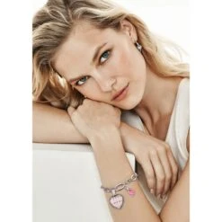 Our 2022 Power of Pink bracelet is wonderfully designed to be symbol of hope for everyone who is touched by breast cancer. Beautiful shades of pink enameled stars and hearts grace the front of this timeless ‘love’ charm.