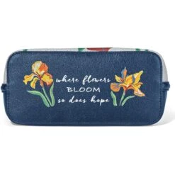 Inspired by Tiffany leaded glass lamps and an iris garden, this floral fantasy of a piece features our designer’s artwork digitally printed onto fine leather, creating a work-of-art slim-profile tote. On the bottom, a message reads, “let your dreams be your wings.”