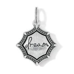 Beautiful on both the front and back, this amulet has unique motifs, hand-colored enamel and gold brushed details on the front and a word to inspire you on the back.