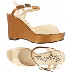 This fashion-forward silhouette is a standout with its scooped out vamp and narrow strap. The subtle, feminine colors coordinate with any clothing.