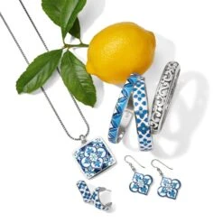 This design reminds us of the Italian phrase caio bella that means “hello, beautiful.” Breathtaking hand painted ceramics created by artisans of Deruta, Italy – where Majolica pottery originates – inspired Catherine Hong’s Florabella creations that bring the colors of Italy’s seas and skies to your wardrobe.