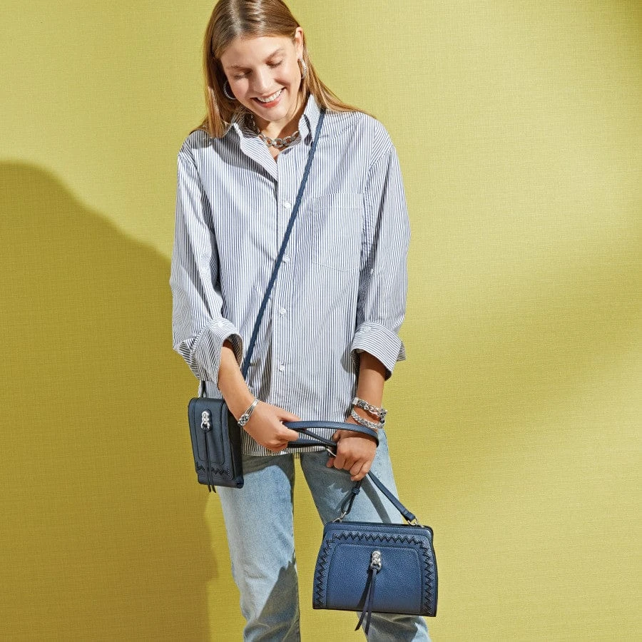 This roomy organizer has pockets to spare, including a clear ID window for easy driver’s license access and 6 credit card slots. We love its elevated yet understated tone, with Celtic knot inspired hardware and subtle zigzag hand-laced details on its front. So easy to wear, with its crossbody strap. Remove the strap and carry as a clutch for ultimate versatility.