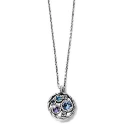 Inspired by the stars, this delicate silver pendant necklace sparkles with fine quality crystals in twilight hues.