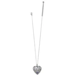 A spectrum of ethereal blue and purple-hued hand-set crystals and silver “rays” make this radiant heart pendant a standout statement piece.