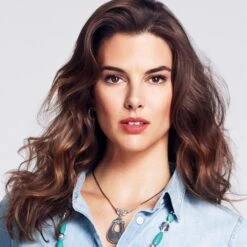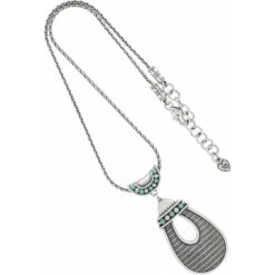 The influence of Native American arts and culture is evident in this gorgeous necklace, with the look of hand-wrapped wire and turquoise howlite stones punctuating its pendant.