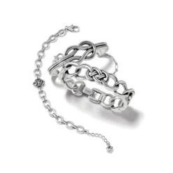 A small knot is linked on each side of a casted oval link on this timeless linked bracelet, with a classic-yet-modern aesthetic. It mixes and layers easily with any Interlok jewelry.