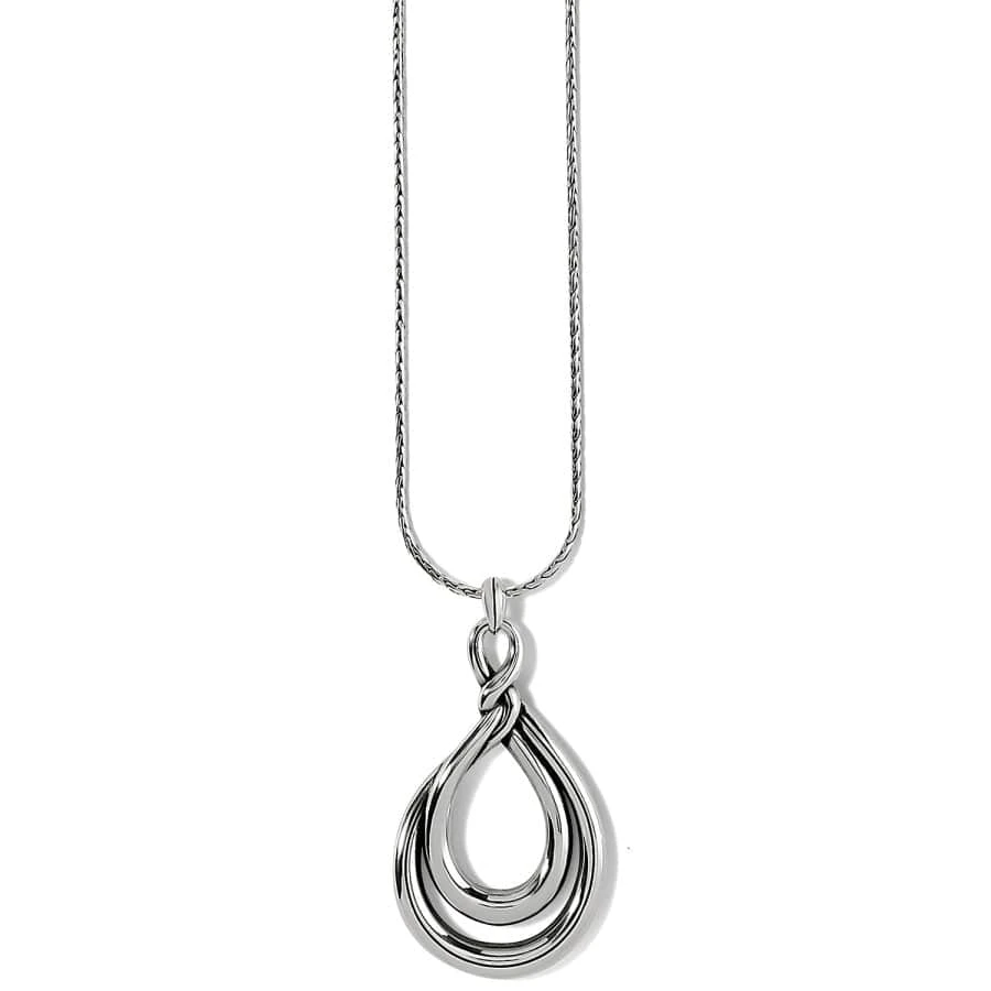 A high-shine silver pendant twists its way into our hearts, inspired by Celtic knots symbolizing eternal love.