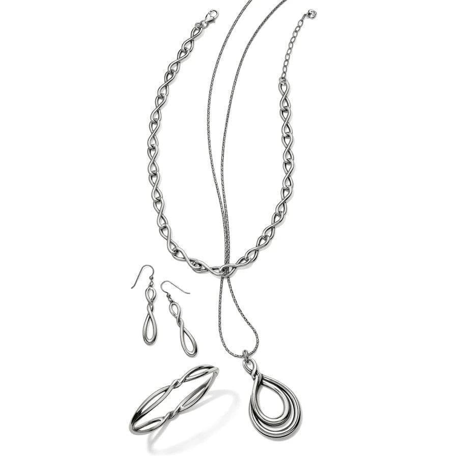 Interlocking infinity links swoop and swirl, connecting to one another in an endlessly beautiful fashion. Inspired by eternal love and loyalty!