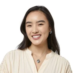 The iconic silver pierced design is outlined in an almost-arabesque silhouette and finished with four tiny crystals on four corners. The pendant is reversible from gold with silver to black enamel