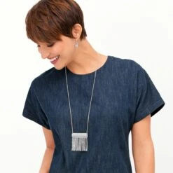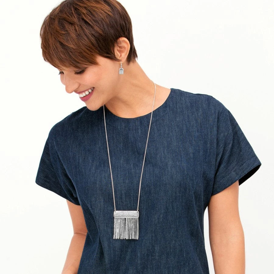 Sassy, swingy chains add a little extra flair to this necklace inspired by the artisans and the markets of Marrakesh. Both sides of this etched silver-plate feature our own Brighton arabesque designs.