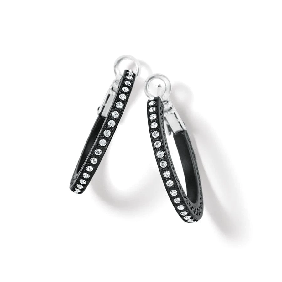 Fine crystal pave details sparkle against these chic black hoops that transition effortlessly from day to night.