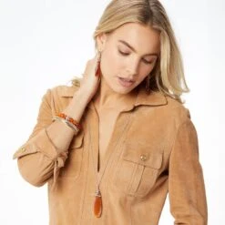 Neptune’s Rings gets a new twist with this stretch bracelet adorned with stacked rings. In natural carnelian, it symbolizes warmth and joy. Because we have used natural materials, each stone is truly one of a kind and may have variations in color.
