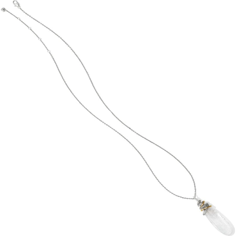 Topped by a tumble of mixed metal and fine quality crystal-bejeweled rings, this crystal drop with natural inclusions symbolizes healing and stress relief. Because this necklace features a natural, semi-precious crystal, each piece will be one-of-a-kind and beautifully unique.