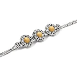 Black onyx-centered cabochons are surrounded by Balinese-inspired pebble textures on this elegant bracelet that is a luxurious everyday accent. Reverses to hammered gold centers.