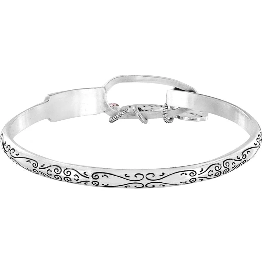 Along with a fine quality-encrusted pink ribbon, the words gratitude and faith dangle on charms from this meaningful bracelet. For every bracelet purchased $10 will be donated to breast cancer charities.