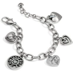 Silver charms send messages of love and hope on the 2018 Power of Pink bracelet. For every bracelet purchased $10 will be donated to breast cancer charities.