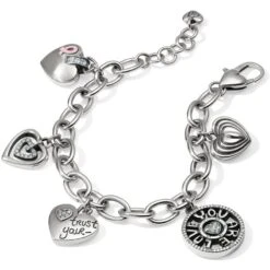 Silver charms send messages of love and hope on the 2018 Power of Pink bracelet. For every bracelet purchased $10 will be donated to breast cancer charities.