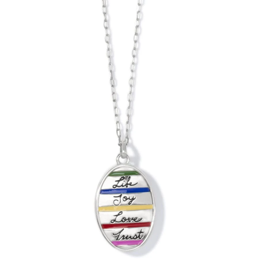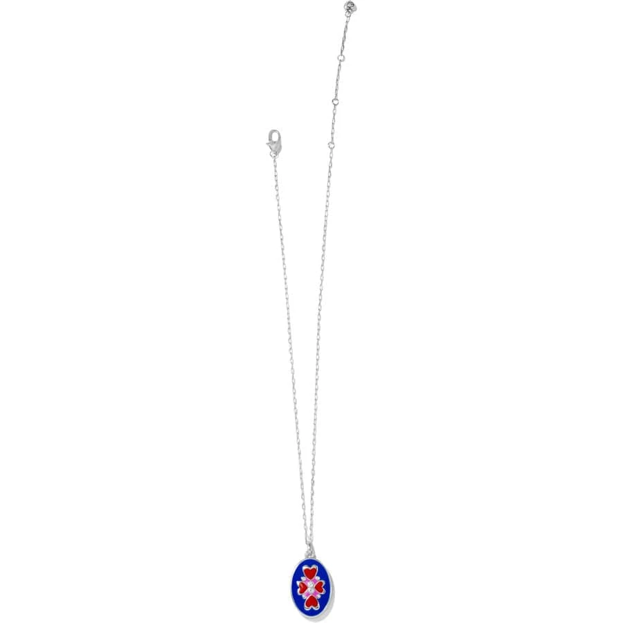 This pendant necklace has its hearts In all the right places to bring you a smile, and inspiring words on the back will keep your spirits bright.