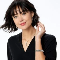 Hinged and ovally-shaped for comfort, this understated bracelet offers a simple design that has the look and feel of fine jewelry.