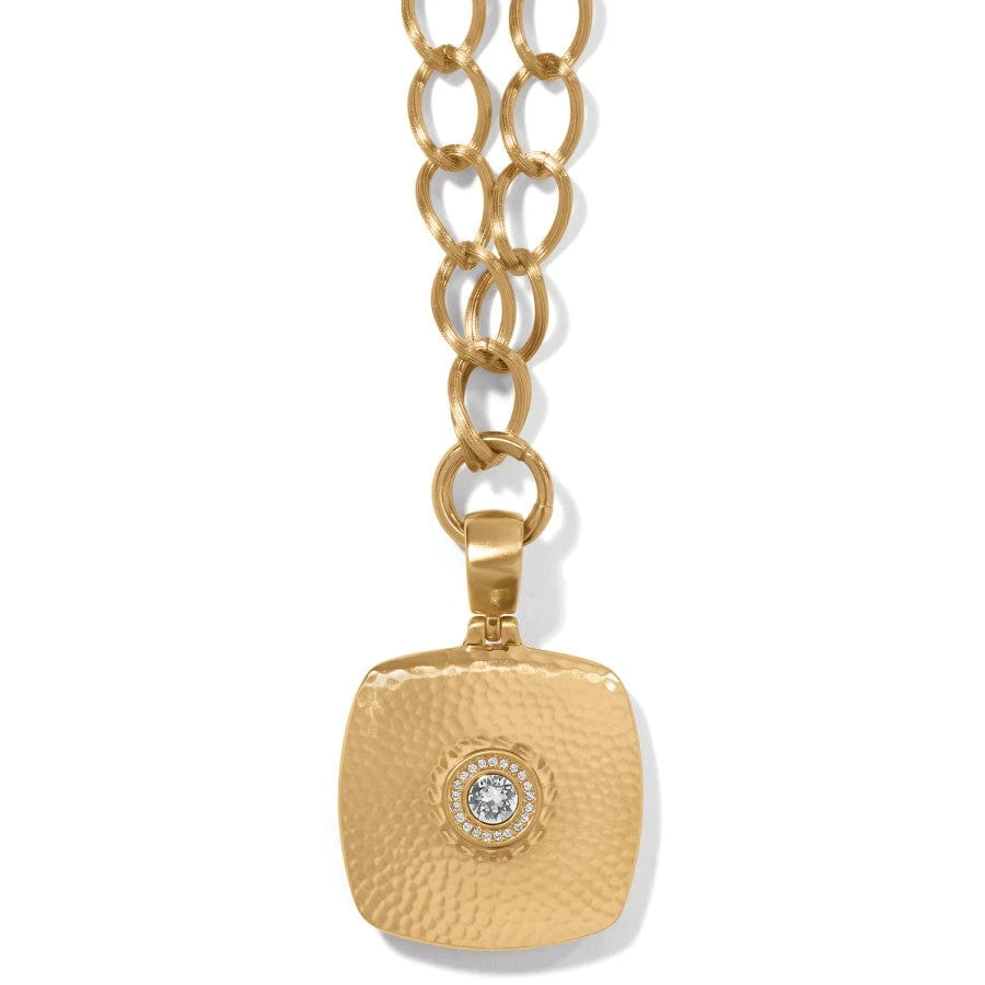 Reminiscent of fine jewelry, this step-stone shaped pendant features channel-set fine quality crystals and comes in a luxe, lightly hammered finish. A message ‘You are my sunshine’ is inscribed on the back of the pendant.