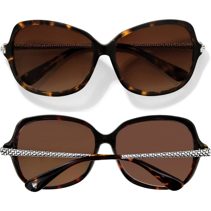 A beautiful soft square shape is accented with a three-dimensional metal woven design from the Talana Collection. Tortoise frames add casual elegance and lenses offer 100% UVA/UVB protection..
