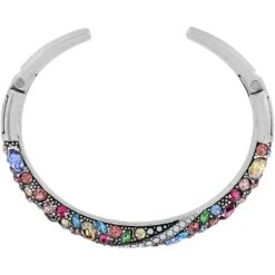 This hinged bangle is simply stunning! A melange of colorful fine quality crystals offers the ultimate wardrobe versatility, and the bracelet is easily stacked with others.