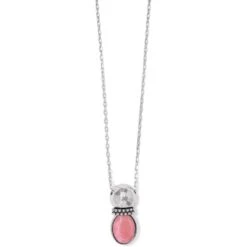 This petite pendant necklace features a moonstone, which is a special glass stone crafted in Germany with an opal layer giving it rich luminosity. Because of its handcrafted nature, each stone will be unique. Wear it solo, or as a layering piece with other necklaces.